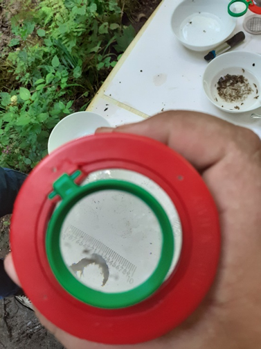 Also wurde der Bienhornbach mit allen Sinnen aufgenommen, fotografiert, durchschritten und mit den verschiedensten Materialien untersucht. Die Bachuntersuchungen mithilfe von Becherlupen bereiteten sehr viel Vergnügen und steigerten die Motivation auf weitere Entdeckungen. Wir entdeckten sogar Bachflohkrebse und Strudelwürmer!