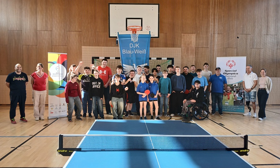 Bereits zum zweiten Mal veranstaltete die Schule am Bienhorntal auf dem Asterstein in Koblenz in Kooperation mit der benachbarten Albert-Schweitzer Realschule Plus sowie dem lokalen Sportverein DJK Blau-Weiß Asterstein e. V. und den Sport-Inklusionslotsen des Landessportbundes Rheinland-Pfalz ein inklusives Tischtennisturnier. Rund 25 Kinder und Jugendliche fanden sich in der Sporthalle ein und konnten zunächst mit einigen Übungen ein Gefühl für Ball und Schläger entwickeln, bevor es dann aber auch schon an die Platten ging. Ob Rundlauf, Doppel, Einzel oder Ballmaschine, alle waren mit viel Freude, aber auch mit Ehrgeiz bei der Sache.